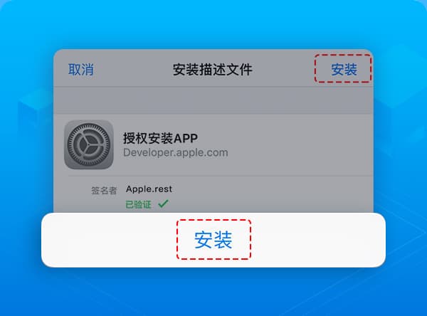 为了确认是设备主人在操作,安装描述文件时需输入【解锁密码】